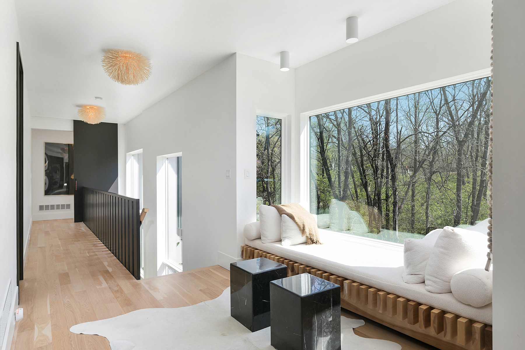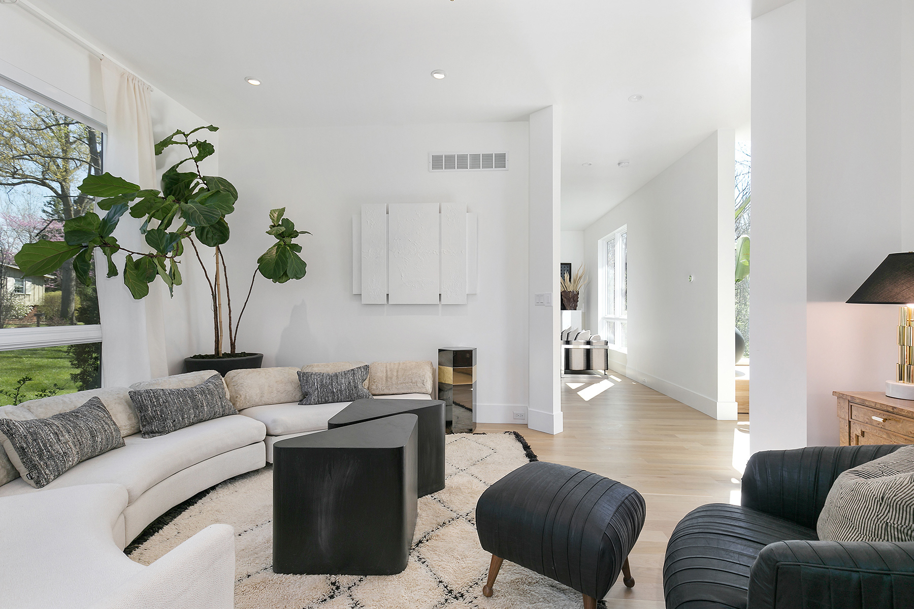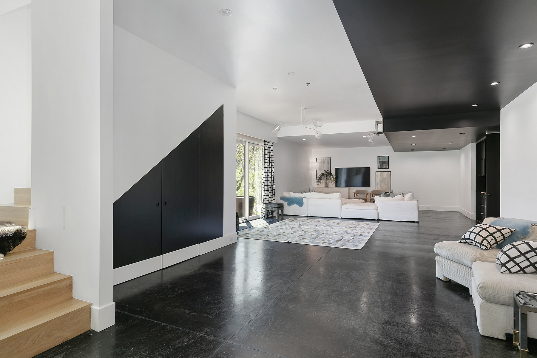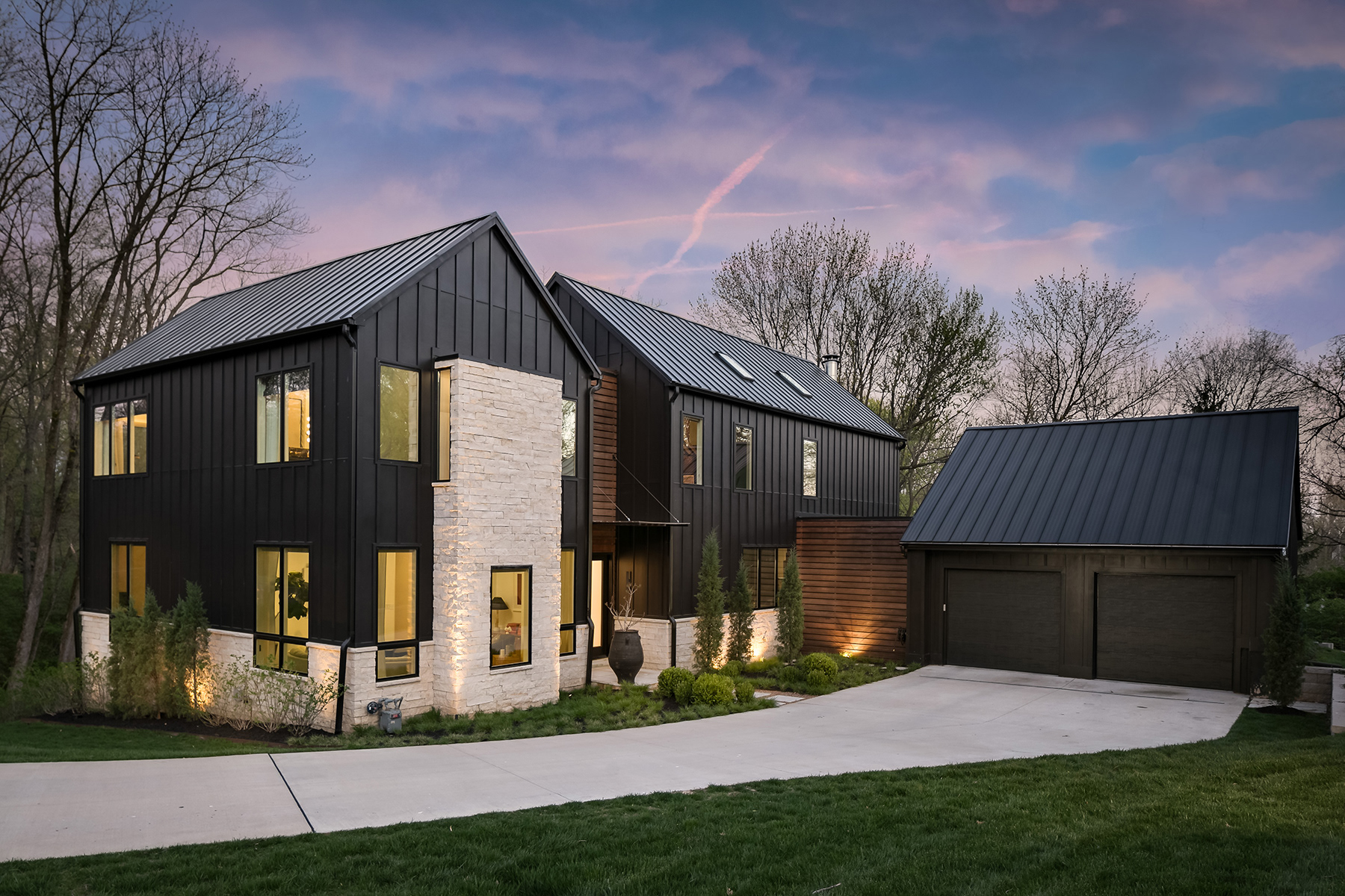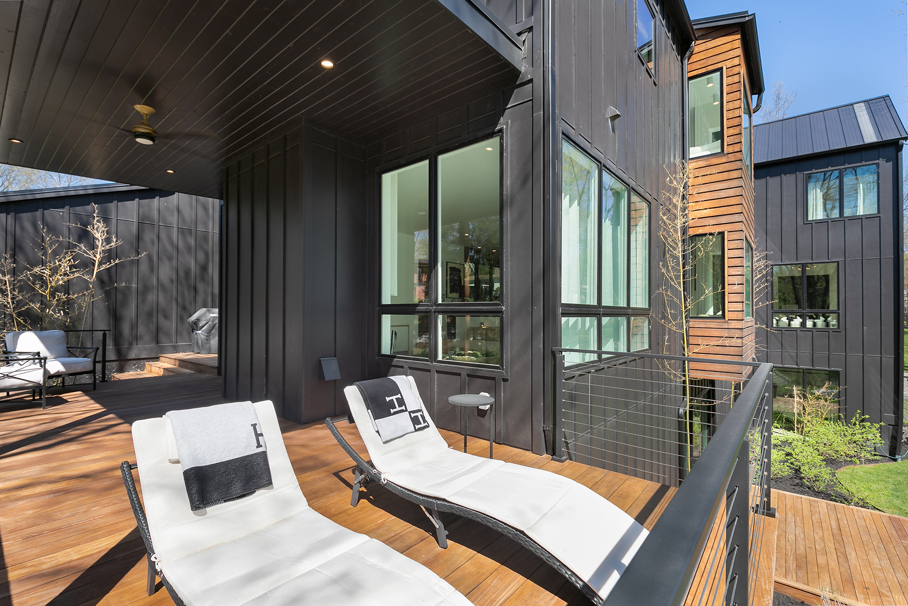 Located in relatively dense suburban neighborhood in St. Louis, this new-build home takes advantage of its sloped, wooded site by organizing the main living spaces to the rear — maximizing its connection to nature, while minimizing its proximity to neighbors. The semi-open plan allows for spaces to flow, while maintaining opportunities for separation and solace when needed. Along with the usual amenities, he main floor master suite has its own private outdoor terrace. The lower-level is an imaginative recreation space, complete with an impromptu nerf basketball court! Access to the rear yard complete the house's connection to nature.
