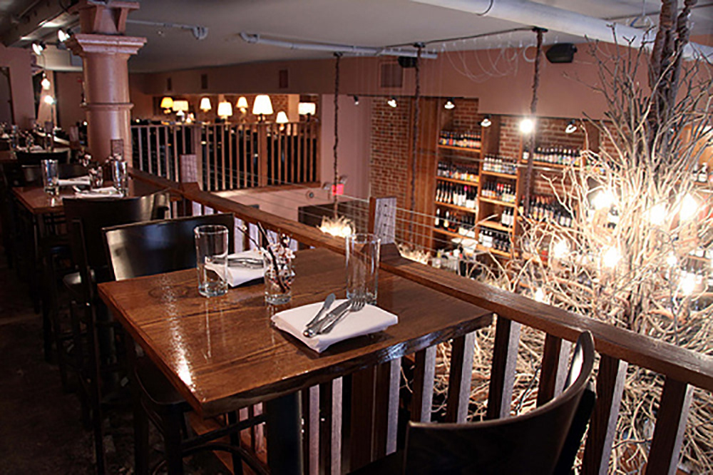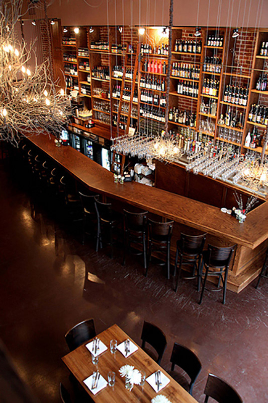 An Urban wine bar and restaurant in an historic building located in the downtown St. Louis loft district, Bridge is a multi-layered space of materiality and volume. Mezzanine seating adda an intimate experience to the expansive loft atmosphere.