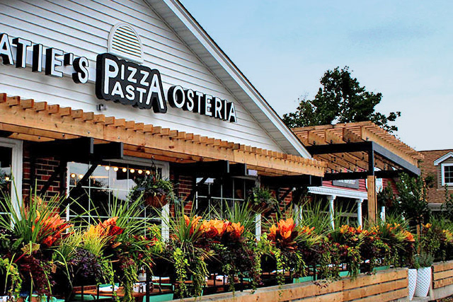 Located in Town and Country, this otherwise nondescript location of Katie's Pizza & Pasta Osteria transforms the strip-mall building into a rich experience of light and materials. A well-detailed pergola defines outdoor space while also providing relief from the light and heat of St. Louis summers. Inside, a light and inviting palette brings a calm airiness to the bustling restaurant.