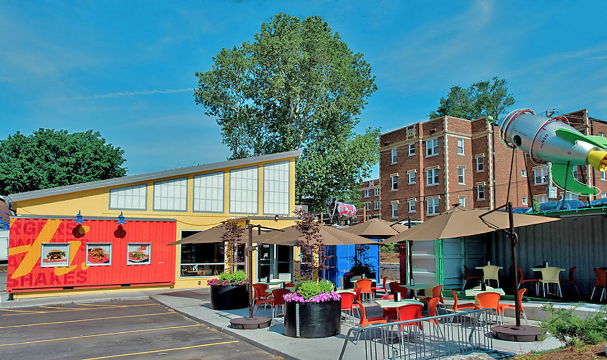 Hi-Pointe Drive-In is a St. Louis restaurant by Sugarfire's Mike Johnson that redefines what a burger-joint can be. Occupying an iconic location, the imaginative renovation incorporates sustainable design and the use of five shipping containers.